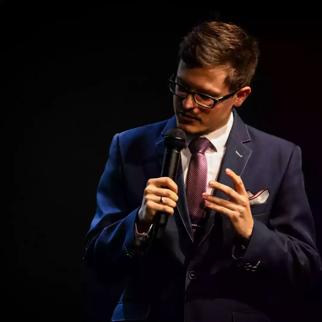Prowadzący nie jest główną gwiazdą wydarzenia, lecz przewodnikiem, który reprezentuje organizatorów, aktywizuje publiczność i wspiera mówców. Pełniłem tę rolę zarówno na małych wydarzeniach firmowych, jak i na dużych konferencjach. Z przyjemnością poprowadzę również Twoje wydarzenie.